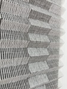 StrukturAtlas viser reliefbilleder og cylinderformede #objekter, skabt ud fra kunstnerens egne vævede #tekstiler af tynde polyestertråde og sprødt, japansk papirgarn, klippet op og foldet i rytmiske strukturer.